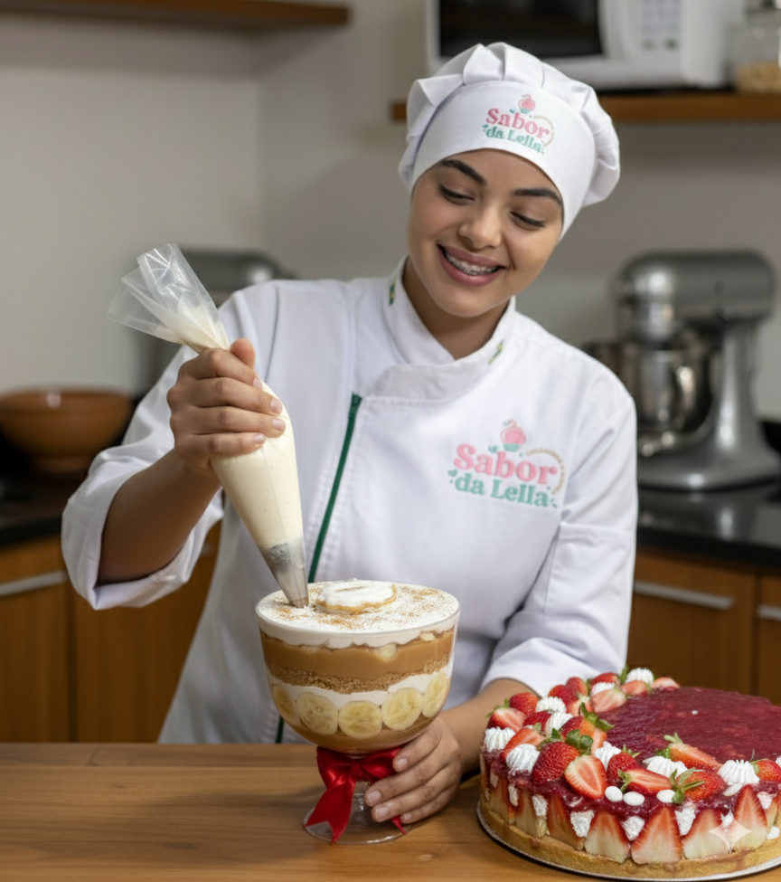 Com 10 anos de experiência e formação pela renomada escola IGA, ela transformou sua paixão no Sabor da Lella, uma confeitaria de sucesso que ela comanda como CEO.